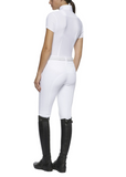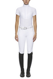 The women's short-sleeved Hunter shirt features a poplin high collar and a front bib with pleated details and hidden buttons. This competition shirt is made from highly breathable 4-way stretch technical jersey that perfectly fits to the body, following your movements. It features a very small tone on tone logo on the front.