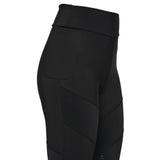 The 4-way stretch material used for this knee grip riding leggins is extremely comfortable, it fits to the body following your movements. Breathability, antibacterail properties and UV protection: this fabric is perfect for summer's training. The transparent knee grip provides the right adherence, while mantaining the flexibility. The high waist elastic waistband fits comfortably and without constriction. The leggings have a practical side pocket.